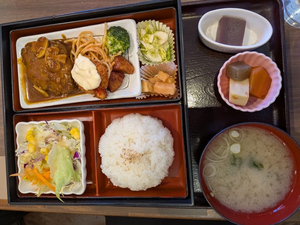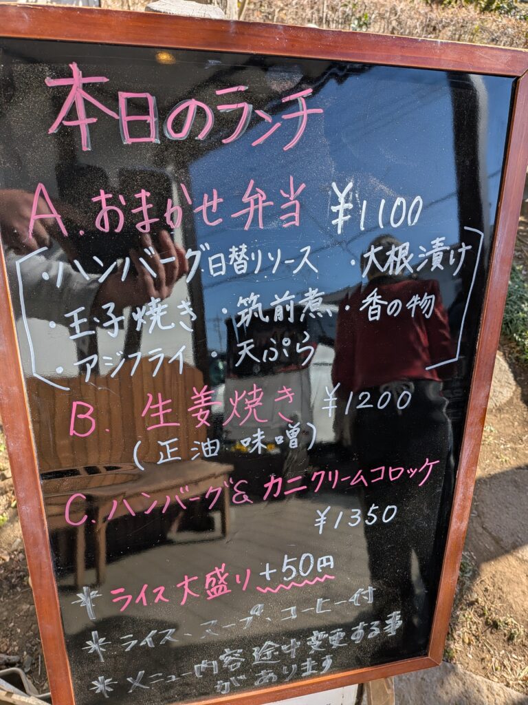 日ごとに内容は変わり、本日は「おまかせ」「生姜焼き」「ハンバーグ&カニクリームコロッケ」の3つ。
